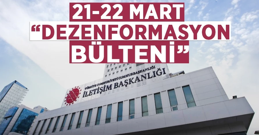 Cumhurbaşkanlığı İletişim Başkanlığı Dezenformasyonla Mücadele Merkezi'nce "21-22 Mart Dezenformasyon Bülteni" yayımlandı.