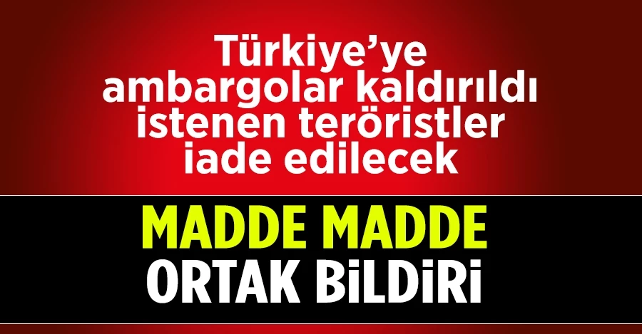 Madrid'de yapılan 4'lü zirve sonrası imzalanan ortak bildiride, İsveç ve Finlandiya Türkiye'nin isteklerini yerine getirdi.