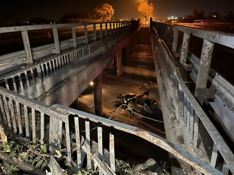 Kaza esnasında hızla orta refüje çıkan otomobil aydınlatma direğine çarptı. Arka arkaya yaşanan çarpmaların etkisiyle aracın parçaları etrafa savruldu. İki lastiği, tamponu, LPG tüpü ve yangın tüpü köprünün üstünde kalan otomobil paramparça halde 5 metre aşağı düştü.