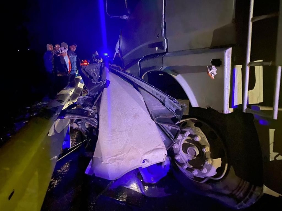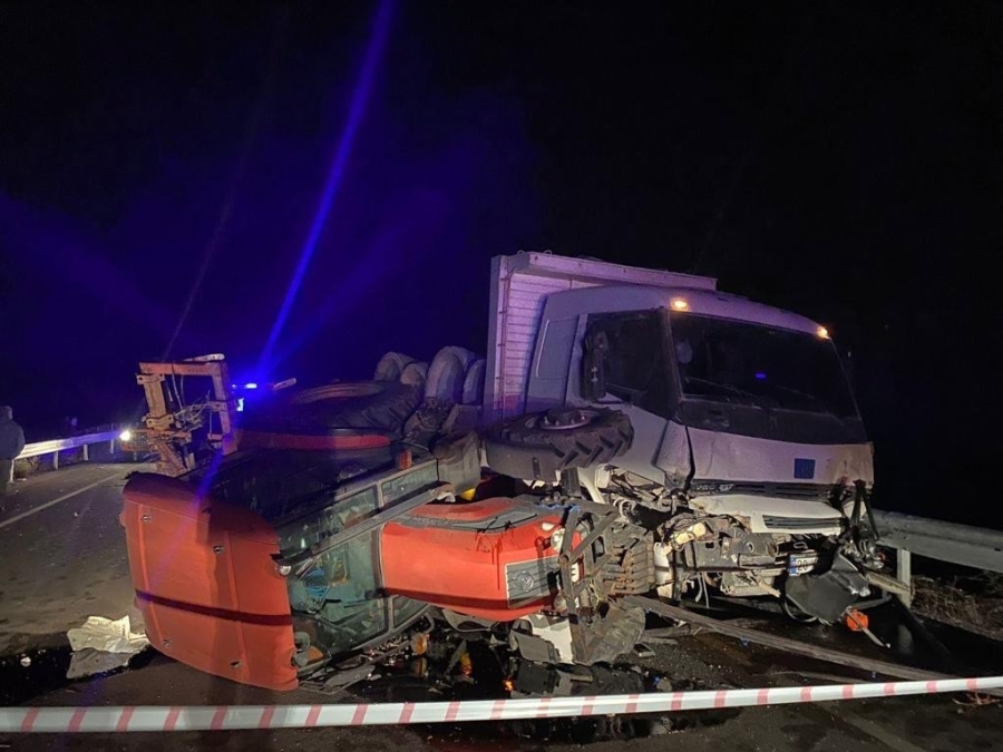 Kamyon, traktör römorkuna vurduktan sonra karşı yönden gelen Şenol Özalp (54) yönetimdeki 15 LH 660 plakalı otomobille kafa kafaya çarpıştı.