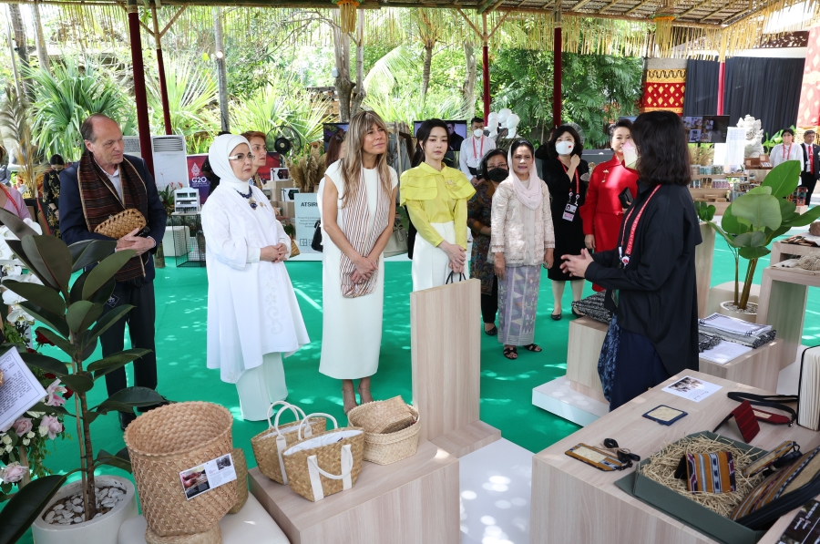 Endonezya Devlet Başkanı Joko Widodo'nun eşi İriana Joko Widodo'nun ev sahipliğinde gerçekleşen buluşmada, Emine Erdoğan, diğer lider eşleriyle Endonezya'ya özgü dokumaları inceleyip, yöresel el sanatları atölyeleri hakkında bilgi aldı.