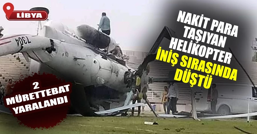 Libya'da nakit para taşıyan bir helikopter, Terhune kentinde stadyuma yaptığı iniş sırasında düştü. Yerel kaynaklar, 40 milyon dinar yüklü uçağın kötü hava koşulları nedeniyle düştüğünü doğruladı. Kazada iki mürettebatın hafif yaralandığı bildirildi.