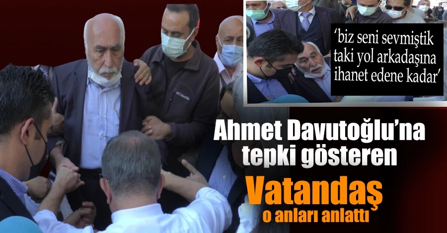 Karamustafaoğlu, “Ahmet Davutoğlu’nun Kayseri ziyareti sırasında Cumhuriyet Meydanı’ndan geçerken ben de oradaydım. Ona tepki göstermek istedim. Sebebi de biz onu gerçekten sevmiştik ama sonra yol arkadaşlarına ihanet işini hazmedemediğim için duygularımı ifade etmek istedim. Ona ‘Davutların Ahmet’ diye biraz yüksek sesle seslendim. Bana doğru gelip elimi tuttu. ‘Biz sizi gerçekten sevmiştik ama yol arkadaşlarınıza ihanet edinceye kadar’ dedim. Onun üzerine ‘ben ihanet etmedim’ dedi ve ismimi sordu. ‘Asıl ihanete uğrayan ben oldum’ dedi ve kendisini savuna durumuna geçti. Nedenini anlatmaya çalıştı. Burada da yakın koruması olacak ki benim herhangi bir fiziki hareketim olmamasına rağmen başparmağımı bükmek suretiyle acımasına sebebiyet verdi. Sonra elimi öptü ve helalleştik, ayrıldılar. Böyle bir tepkimi ortaya koydum” ifadelerini kullandı.