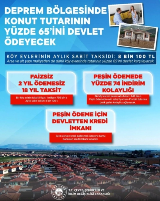Afet konutlarının altyapı bedellerinin devlet tarafından karşılandığını açıklayan Erdoğan, kalan fiyat üzerinden vatandaşlara yüzde 50 indirim yapıldığını kaydetti. Konut fiyatlarının yüzde 65’inin devlet tarafından ödendiğini belirten Erdoğan, ayrıca 2 yıl boyunca ödeme alınmayacağını ifade etti.