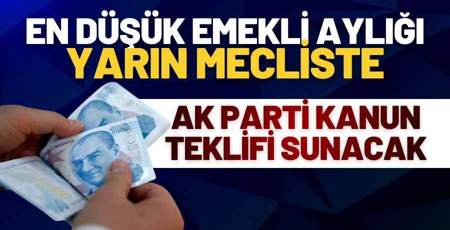 En düşük emekli maaşının yükseltilmesini öngören düzenlemeyi içeren kanun teklifinin, yarın AK Parti Grup Başkanı Güler tarafından TBMM Başkanlığı’na sunulacağı bildirildi.