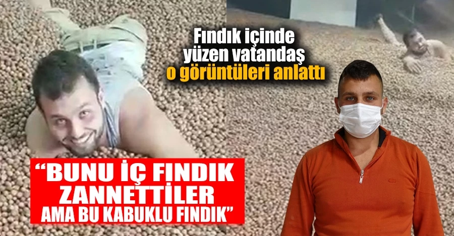 Sosyal medyada paylaşılan videolarda görülen Halil Can Şahin, “Burada fındıkları boşaltım yağan cihaz tıkanmıştı ve onu açmak için mecburen fındığın üzerine çıktık. Çünkü fındık boşaldığı için oraya merdiven yetmiyor. Oradan aşağı gelirken de burada 1-2 ton değil yaklaşık 400 ton fındık var. Benim de ayağım battığı için yüzüstü geldim. O anlık da video çektik ve olay böyle gerçekleşti. Bu fındığın içerisine zaten çeşitli yollarla mecburen giriliyor. Zaten bu iç değil kabuklu fındık. Karadenizliler fındığın nasıl olduğunu daha iyi bilir. İnsanlar bizim fındığı galiba iç fındık zannetmişler ama yanılmışlar” diye konuştu.