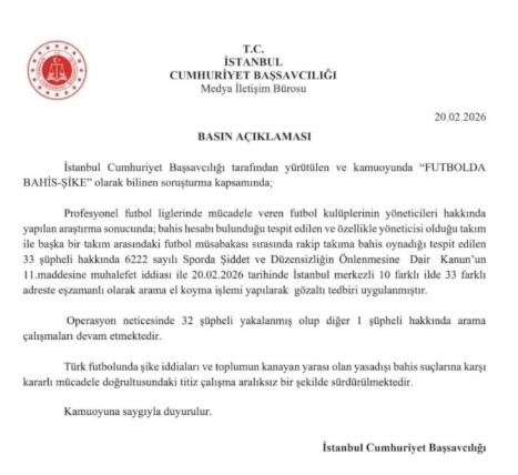 İstanbul Cumhuriyet Başsavcılığı’nın yürüttüğü soruşturmada 33 şüpheli hakkında gözaltı kararı verildi.