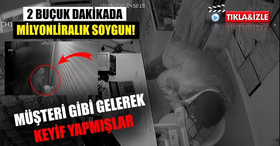 Ellerinde levye olan hırsızlar iş yerinin kepengini kırarak içeri girdi. İş yerinde bulunan alarm sistemiyle panik yapan hırsızlar iki buçuk dakika gibi kısa bir süre içerisinde gümüşçüde bulunan 100 kilogram gümüş ve kasada bulunan 300 bin TL’yi alarak oradan uzaklaştı. 6 kişi tarafından gerçekleştirilen hırsızlık olayında şüphelilerin günler öncesinden müşteri gibi geldikleri iş yerine gelerek keşif yaptıkları öğrenildi.
