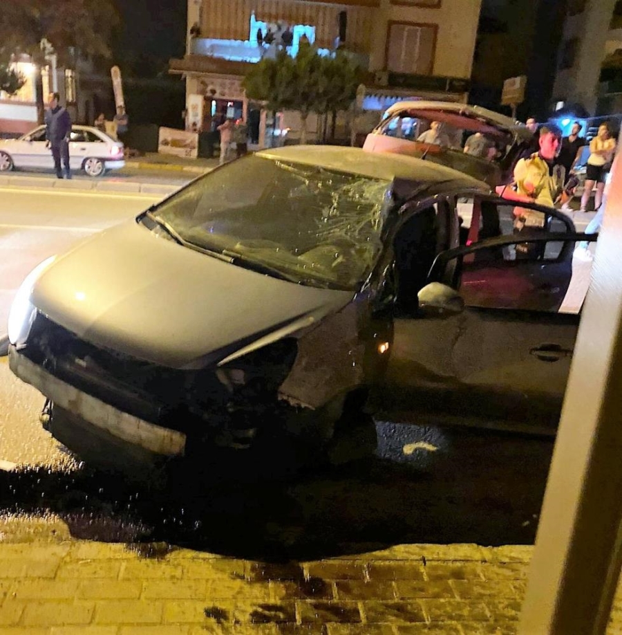 Kontrolden çıkan araç direğe çarpıp takla attı