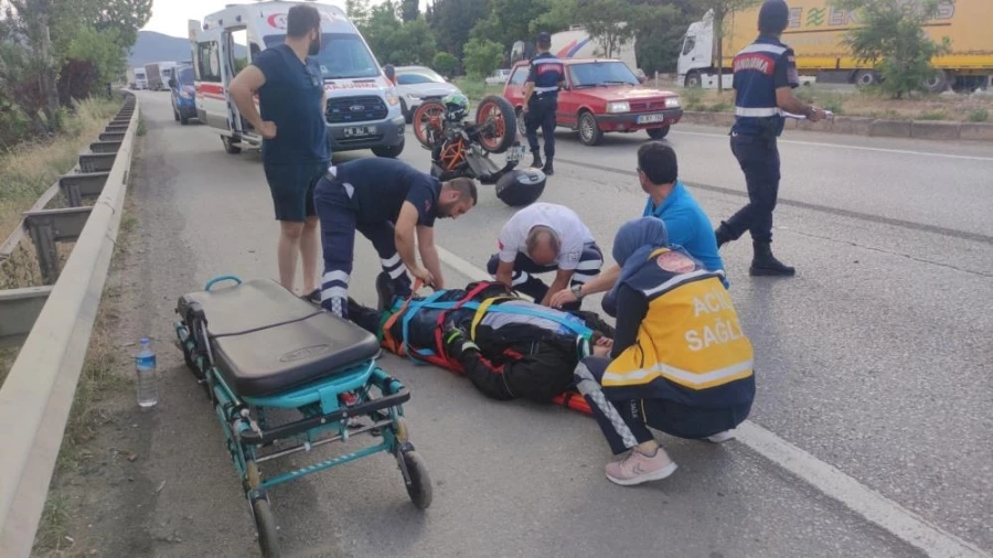 Motosiklet ters döndü, sürücü savruldu
