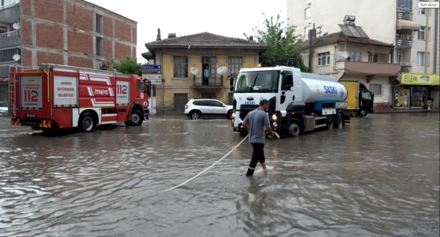 Aniden bastıran şiddetli yağış nedeniyle ilçe merkezinde yollar suyla kaplandı. Bazı araçlar göle dönen yollarda kaldı. Mehmet Akif Ersoy Caddesi'nde seyir halinde olan bir midibüs yağmur nedeniyle taşan rögar kapağına çarptıktan 100 metre sonra araçta yangın çıktı. Yangına önce esnaflar ve taşan su birikintilerini boşaltmak için bölgede bulunan SASKİ ekipleri müdahale etti. Yolların şiddetli yağıştan kapanması nedeniyle itfaiye ekipleri olay yerine güçlükle ulaştı. İtfaiye ekiplerinin de müdahalesi ile midibüste çıkan yangın söndürüldü. SASKİ ekipleri de biriken yağmur sularını boşaltmak için çalışma başlattı.