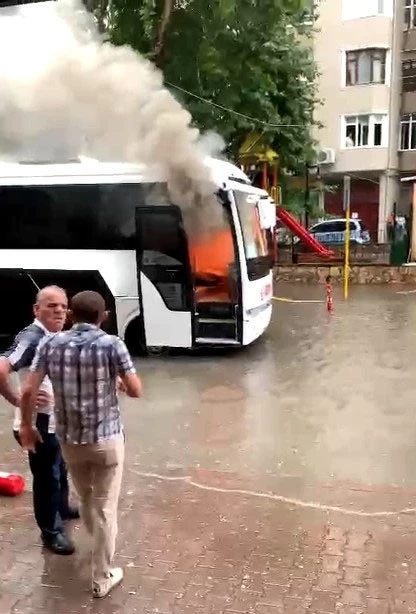 Rögar kapağına çarpan bir midibüste yangın çıktı