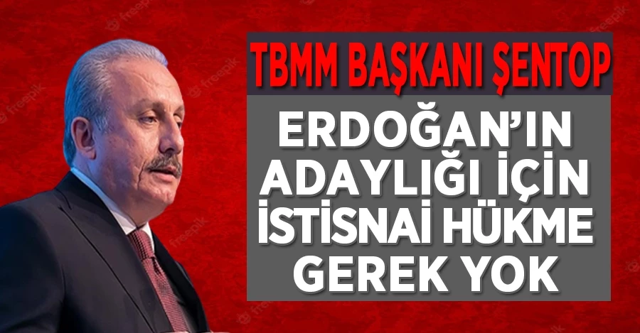 Şentop, "2018'den sonra Türkiye'de 1 defa seçim yapılmıştır, cumhurbaşkanımız 1 defa aday olmuş ve seçilmiştir. 14 Mayıs seçimi 30 Nisan 2018'den sonraki ikinci seçimdir. İkinci defa adaylığı söz konusudur. Sayın Cumhurbaşkanının adaylığı için bir istisna hükmüne ihtiyaç yoktur. Hukuken hiçbir sorun yok. İkinci adaylığı söz konusudur" dedi.